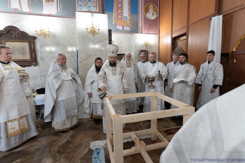Архипастырю сослужил собор клириков Тольяттинской епархии. Во время освящения был совершен крестный ход вокруг храма с мощами мучеников, сообщает епархиальный сайт.