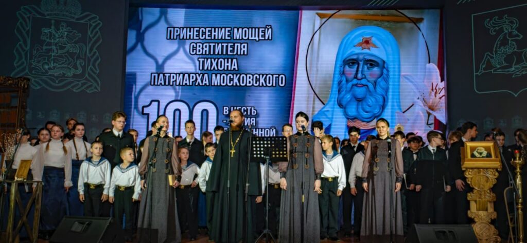 26 сентября 2025 года в зале администрации Одинцовского городского округа в рамках программы событий, приуроченных к принесению мощей святителя Патриарха Тихона в Одинцовскую епархию, прошла премьера проекта, объединившего в себе творческие силы профессиональных артистов, священнослужителей и детских хоров.