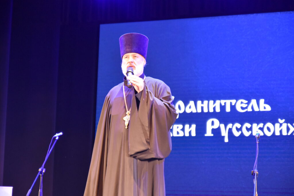 В начале праздничной программы выступил секретарь епархиального управления протоиерей Дионисий Казанцев, передавший приветствие и благословение от архиепископа Одинцовского и Красногорского Фомы.