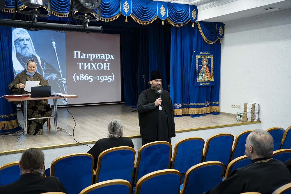 Собравшиеся узнали о насыщенном архиерейском служении святителя Тихона до избрания его патриархом и о годах патриаршества в период гонений на Русскую Православную Церковь.