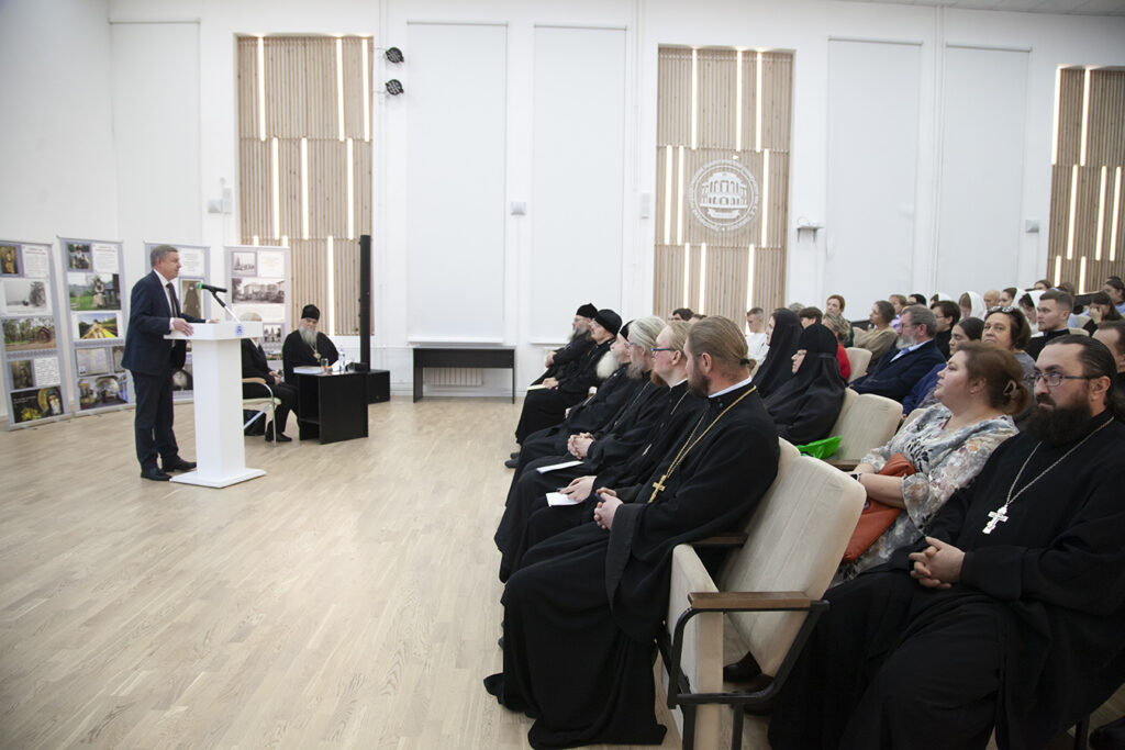 Приветствие ректора СПбДА епископа Петергофского Силуана зачитал преподаватель академии Дмитрий Карпук.