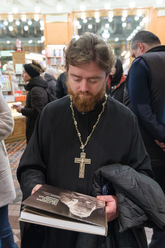 Протоиерей Александр Пашков поблагодарил директора Дома книги Кристину Матвееву. Он рассказал, что митрополит Варсонофий с радостью благословил издание книги о Патриархе Тихоне.