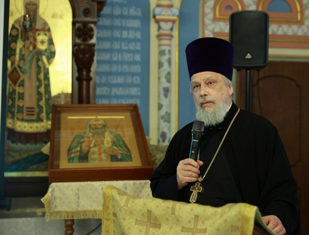 Тему «Актуальность подвига святителя Тихона, Патриарха Всероссийского в нынешнее время» раскрыл в своем выступлении настоятель Лукинского храма Южно-Сахалинска протоиерей Андрей Чугунов.